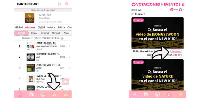 Ve al icono de estrella en la parte de abajo, busca la competencia donde este nominado SRTAY KIDS y utiliza tus créditos.
