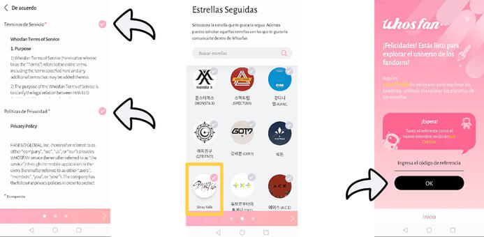 Paso 4. Acepta los términos y condiciones, busca a STRAY KIDS e ingresa un código de referencia para obtener créditos.